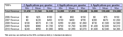 Summary Income Chart – Quarterly contract revenues (4 application per quarter)