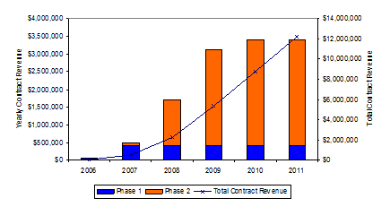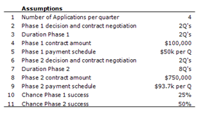 The two example scenarios are just two possible instances of what might actually happen and it is very clear that there can be a significant difference in the amount of contract revenue obtained. In the latter scenario there have been far fewer successful Phase 1 and 2 applications and a difference in over $4million in received contract revenues.