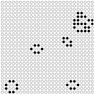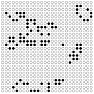 The Excel document uses macros to simulate the birth and death of the cells according to the rules outlined above. There is a macro that will seed the game with a random configuration of cells. You can then increment this a single generation at a time or run ‘life’, where you will see the evolution of the cells over one hundred generations. There are also some interesting configurations stored on other worksheets. You can cut and paste these into the start generation and run life from there. There are a numbert of interesting ‘creatures’ outlined in Martn Gardiner’s Scientific American article from 1970.