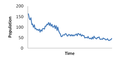 The macro also records and plots the population change over time. The plots for xbar and ybar give the average location of all the cells – when looking as single creatures such as a ‘glider’ you can see the aggregate direction they take.