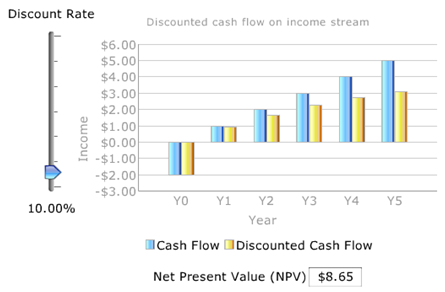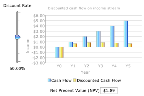 The following dashboard allows you to change the discount rate and see the time value of a dollar over a period of 5 years.